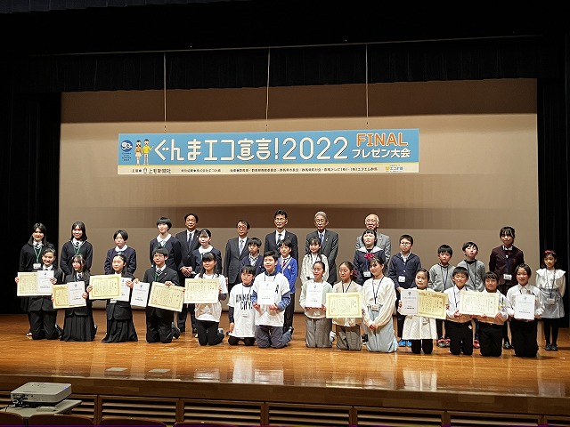 今回で5度目の開催となる小中学生が環境問題をテーマにプレゼンテーションをする「ぐんまエコ宣言!2023」(上毛新聞社主催、エコ計画特別協賛)の本大会が2/23(木・祝)に前橋市・県公社総合ビルで開催されました。