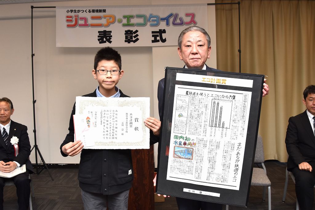 2024年3月9日(土)、埼玉県と埼玉新聞社主催の「小学生がつくる環境新聞ジュニア・エコタイムス表彰式」が行われ、受賞者13名と学校特別賞の3校に賞状と目録が手渡されました。